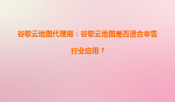 2025-09-27谷歌云地图代理商:谷歌云地图是否适合零售行业应用? 引言 随着数字化时代的快速发展,零售行业面临着前所未有的竞争压力。为了在激烈的市场竞争中脱颖而出,零售商们纷纷寻求创新的技术解...