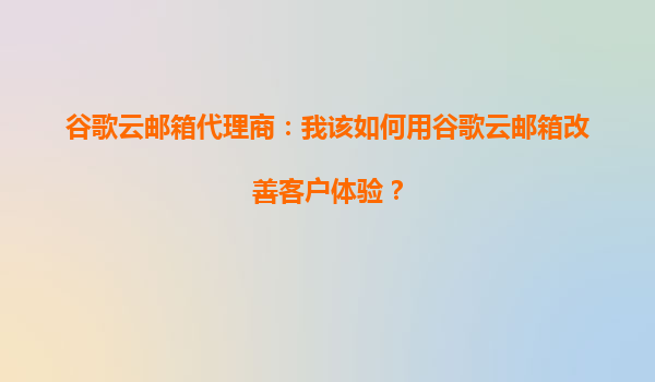 2025-09-27谷歌云邮箱代理商:我该如何用谷歌云邮箱改善客户体验? 引言 作为谷歌云邮箱代理商,帮助企业客户充分利用谷歌云邮箱(GmailforBusiness)的强大功能,是提升客户体验的关键。谷歌云邮箱不仅仅是电子邮件...