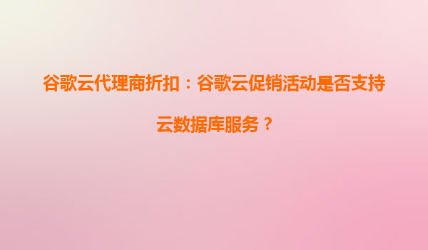 2025-09-25谷歌云代理商折扣:谷歌云促销活动是否支持云数据库服务? 一、谷歌云促销活动概览 谷歌云(GoogleCloud)作为全球领先的云计算服务提供商,定期推出各类促销活动,以吸引新用户并回馈老用户...