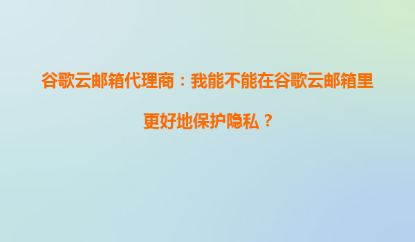 2025-09-24谷歌云邮箱代理商:我能不能在谷歌云邮箱里更好地保护隐私? 为什么隐私保护在谷歌云邮箱中至关重要? 在现代数字时代,隐私保护已成为企业和个人用户最关心的问题之一。电子邮件作为日...