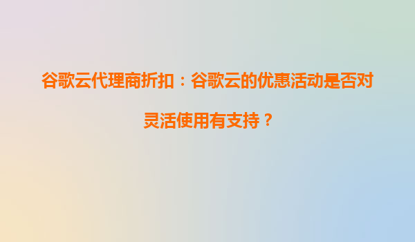 2025-09-24谷歌云代理商折扣:灵活使用与云端优势完美结合 谷歌云优惠活动对灵活使用的支持 谷歌云通过代理商渠道提供的折扣政策,充分考虑了不同企业的灵活使用需求。无论是新用户注册优惠、长期合约折扣,还是按需计...