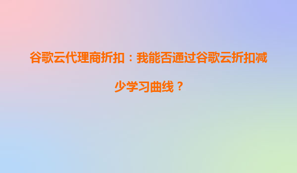 2025-09-23谷歌云代理商折扣:我能否通过谷歌云折扣减少学习曲线? 引言:云计算时代的学习成本与挑战 在数字化转型的浪潮中,谷歌云(GoogleCloud)作为全球领先的云服务提供商...