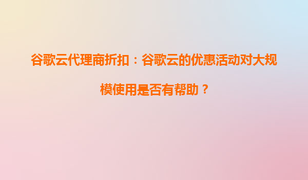 2025-09-23谷歌云代理商折扣:大规模使用的优势解析 一、谷歌云的核心优势 在当今云计算市场竞争激烈的环境下,谷歌云(GoogleCloudPlatform,GCP)凭借其独特的技术和服务优势,...