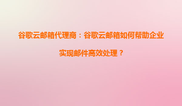 2025-09-23引言 在当今高度数字化的商业环境中,高效的邮件处理已成为企业提升沟通效率、优化工作流程的关键环节。谷歌云邮箱(GoogleWorkspace中的Gmail商务版)凭借其强大的功能和云端优势,为企业提供了安全可靠的邮件解决...