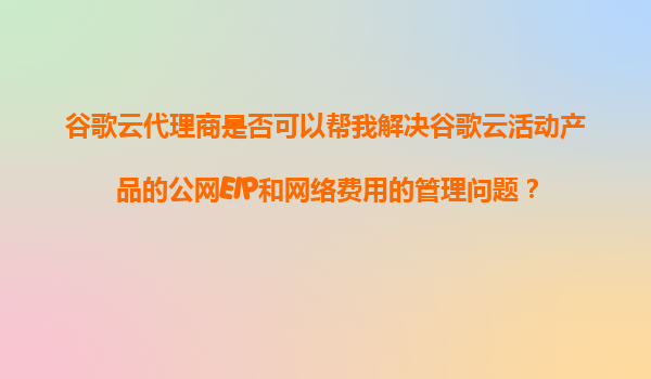 2025-11-07谷歌云代理商如何助力企业高效管理公网EIP与网络费用? 一、谷歌云的网络资源优势 谷歌云(GoogleCloud)作为全球领先的公有云服务商,其网络基础设施以高性能...