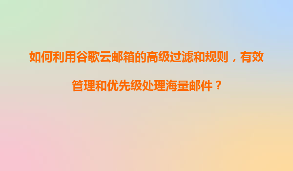 2025-11-07谷歌云邮箱高级过滤与规则:高效管理海量邮件的终极指南 为什么选择谷歌云邮箱处理海量邮件 谷歌云邮箱(Gmail)凭借其强大的云计算基础设施和智能化算法,成为处理大量邮件的理想选择。其服务稳定性高达99....