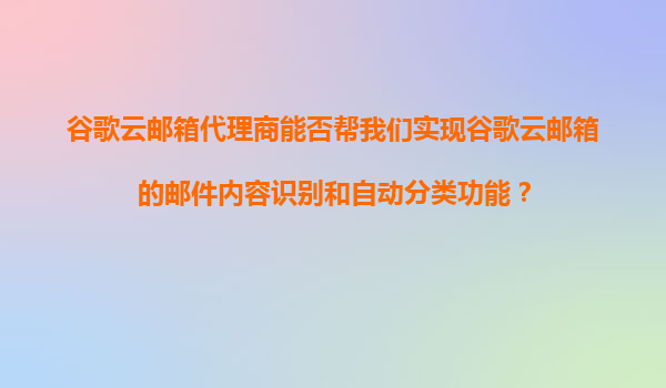 2025-11-07谷歌云邮箱代理商能否帮我们实现邮件内容识别和自动分类功能? 1.谷歌云邮箱的核心能力 谷歌云邮箱(GmailforBusiness)作为企业级邮件服务,内置强大的AI技...