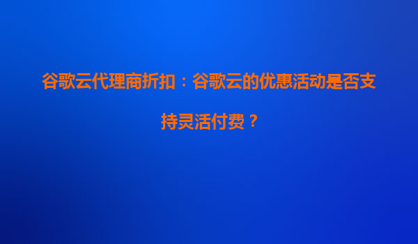 2025-09-22谷歌云代理商折扣:谷歌云的优惠活动是否支持灵活付费? 引言 云计算已经成为现代企业技术架构的核心部分,而谷歌云(GoogleCloud)凭借其强大的基础设施和灵活的付费模式,在全球范围...
