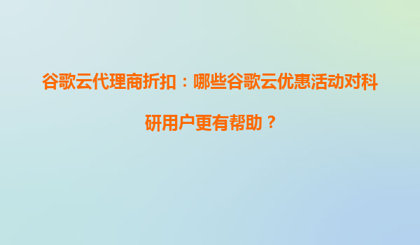 2025-09-22谷歌云代理商折扣:哪些谷歌云优惠活动对科研用户更有帮助? 一、科研用户为何选择谷歌云? 谷歌云(GoogleCloudPlatform,GCP)凭借其全球化的基础设施、高性能计算能力以及丰富的...