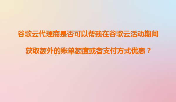2025-11-07谷歌云代理商能否在活动期间帮您获取额外优惠?解析谷歌云优势与采购策略 在云计算服务市场竞争日益激烈的今天,谷歌云(GoogleCloudPlatform,GCP)凭借其独特的技术优势和创新服务持续吸引着企业用户。许多用...
