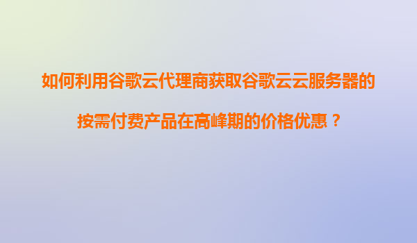 2025-11-07如何利用谷歌云代理商获取谷歌云服务器的按需付费产品在高峰期的价格优惠? 一、为什么选择谷歌云按需付费模式? 谷歌云(GoogleCloudPlatform,GCP)的按需付费(Pay-as-you-go)模式提供了极大的灵活性...