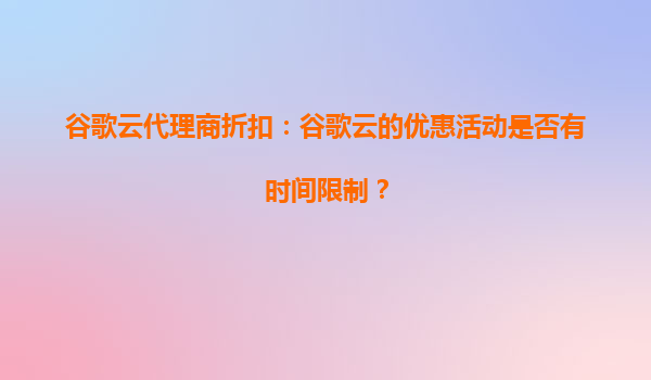 2025-09-19谷歌云代理商折扣与优惠活动详解 谷歌云优惠活动的时间限制 谷歌云的优惠活动通常会有一定的时间限制,具体时长取决于活动的类型和目标用户群体。例如,针对新用户的免费试用期一般为90天,而特定产品...