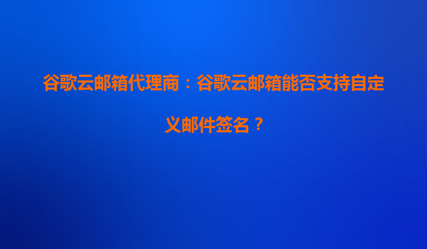 2025-09-19谷歌云邮箱代理商:谷歌云邮箱能否支持自定义邮件签名? 作为全球领先的企业级云服务提供商,谷歌云邮箱(GoogleWorkspace)凭借其强大的功能和稳定性,成为众多企业和组织的首选邮件服务。许多用户在考虑迁移到...