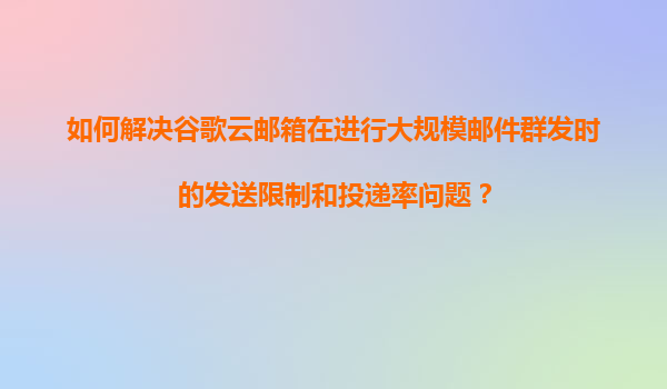 2025-11-07如何利用谷歌云邮箱优势解决大规模邮件群发限制与投递率问题 谷歌云邮箱的高可靠性基础设施 谷歌云依托全球分布的数据中心网络,在邮件传输过程中自动选择最优路径,确保投递稳定性。其基础设施支持高达99....