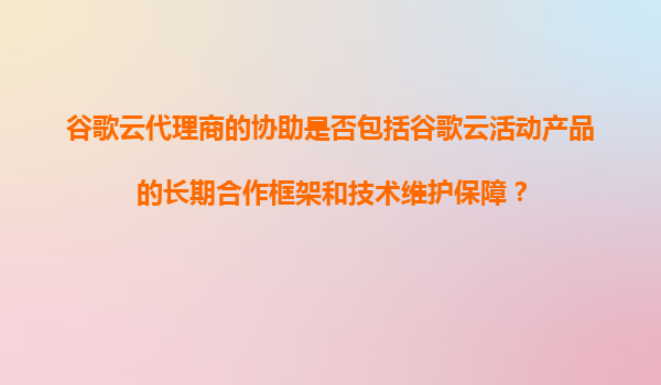 2025-11-07谷歌云代理商合作框架分析:长期技术维护与活动产品支持 一、谷歌云代理商的核心服务范畴 谷歌云官方认证代理商的服务通常涵盖两个关键维度:一是基于特定活动产品的短期合作支持(如促销期间的资源部署),二是构...