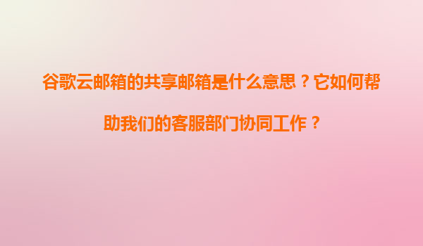 2025-11-07谷歌云邮箱的共享邮箱:提升客服团队协同效率的利器 一、什么是谷歌云邮箱的共享邮箱? 谷歌云邮箱(GoogleWorkspace,原GSuite)的共享邮箱(CollaborativeInbox)是一种允...