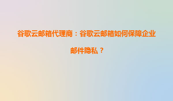 2025-09-18谷歌云邮箱如何保障企业邮件隐私 顶级加密技术确保数据安全 谷歌云邮箱采用业界领先的传输层安全协议(TLS)对邮件进行端到端加密,保障数据在传输过程中不会被截获或篡改。同时开启S/MIM...