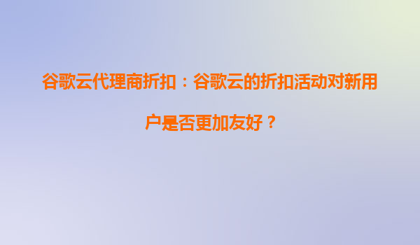 2025-09-18谷歌云代理商折扣:谷歌云的折扣活动对新用户是否更加友好? 引言 近年来,随着云计算的普及,越来越多的企业和开发者开始选择云服务提供商来托管他们的应用程...