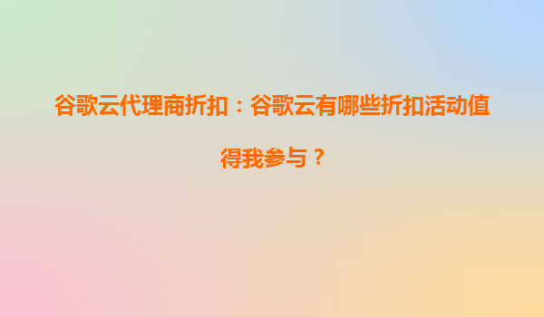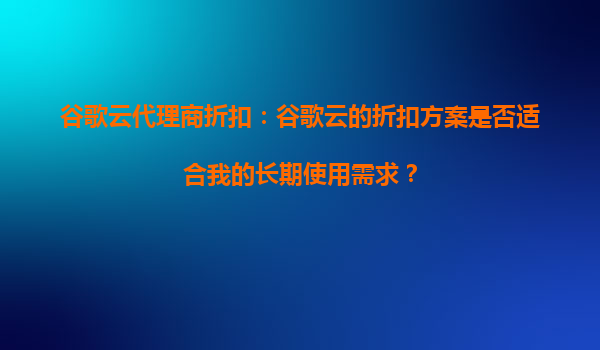 2025-09-18谷歌云代理商折扣:谷歌云的折扣方案是否适合我的长期使用需求? 一、谷歌云的核心优势 谷歌云(GoogleCloudPlatform,GCP)作为全球领先的云计算服务提供商...
