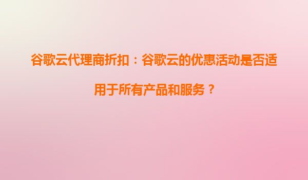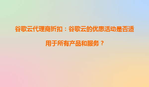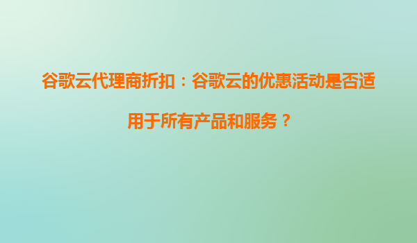 谷歌云代理商折扣:谷歌云的优惠活动是否适用于所有产品和服务? 一、谷歌云优惠活动概览 谷歌云(GoogleCloudPlatform,GCP)作为全球领先的云计算服务提供商之一,经常推出各种优惠...
