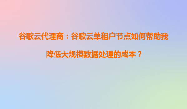 2025-09-18谷歌云单租户节点:企业级数据处理的经济之选 专属硬件带来的性能与成本平衡 谷歌云单租户节点(Sole-TenantNodes)通过为单个客户提供专属物理服务器,完美解决了多租户环境下资源争用导致的性能波...