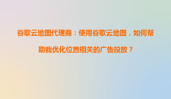 2025-09-18谷歌云地图代理商:如何利用谷歌云地图优化位置相关广告投放 精准定位目标受众 谷歌云地图提供了强大的地理位置数据和分析工具,能够帮助广告主精准定位目标受众。通过API接口,广告主可以获取用户的实时位...