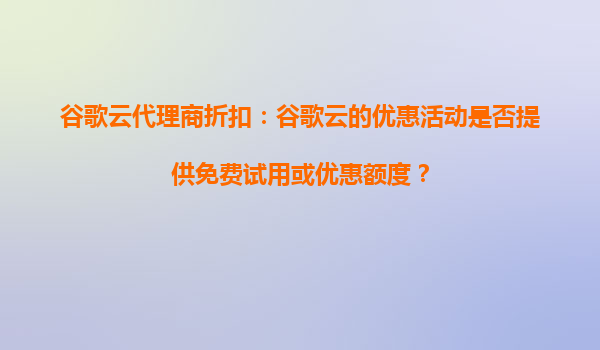 2025-09-18谷歌云代理商折扣:如何为您的公司提供更具竞争力的优势? 引言:云计算时代的企业竞争新格局 在数字化转型的浪潮中,云计算已成为企业提升效率、降低成本、加...