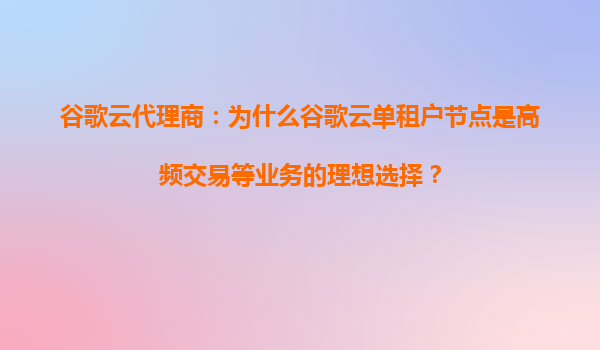 2025-09-17为什么谷歌云单租户节点是高频交易等业务的理想选择? 在当今数字化经济浪潮中,高频交易(HFT)和实时数据处理业务对计算资源的独占性、稳定性和低延迟提出了极致要求。传统的多租户云架构可能因资源共享导致...