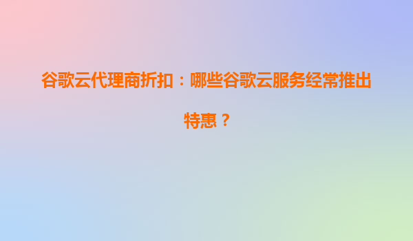 谷歌云代理商折扣:哪些谷歌云服务经常推出特惠? 随着企业数字化转型的加速,云计算服务成为许多企业的首选。谷歌云(GoogleCloud)作为全球领先的云服务提供商之一,凭借其强大的基础设施、先进的技术和灵...