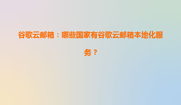 2025-07-02谷歌云邮箱:哪些国家有谷歌云邮箱本地化服务及其优势解析 谷歌云邮箱(GoogleWorkspace,原GSuite)作为全球领先的企业级电子邮件和协作工具,为全球用户提供高效、安全的云端通信服务。为了满足不同地...