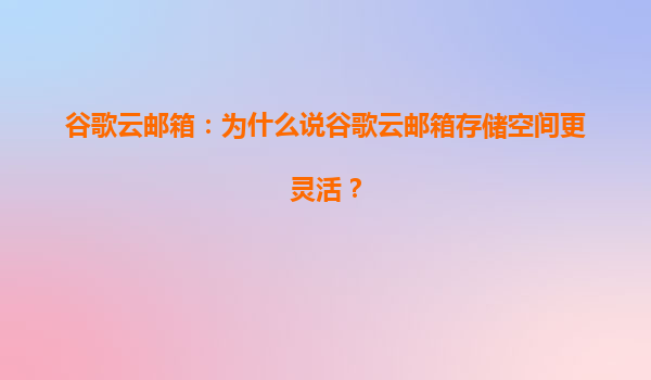 2025-07-02谷歌云邮箱:为什么说谷歌云邮箱存储空间更灵活? 谷歌云邮箱(GoogleWorkspace)作为企业级电子邮件服务的佼佼者,其存储空间的灵活性一直备受用户青睐。无论是小型创业公司还是大型跨国企业,都可以通过...