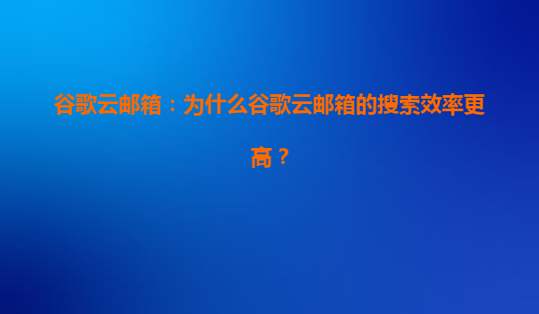 2025-07-02谷歌云邮箱:为什么谷歌云邮箱的搜索效率更高? 引言:电子邮件的高效搜索痛点 随着电子邮件成为现代工作和个人生活必不可少的通信工具,人们每天接收和发送大量邮件。面对海量邮件信息,如...