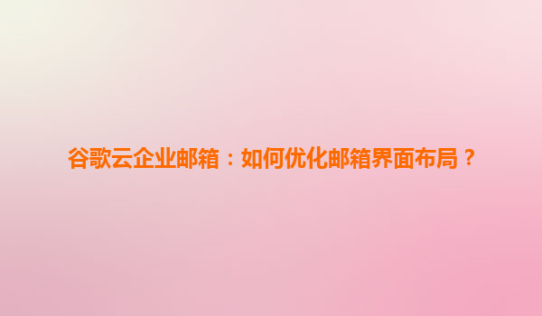2025-04-24谷歌云企业邮箱界面布局优化指南 一、个性化主题与界面定制化 谷歌云企业邮箱支持深度界面个性化设置,用户可通过主题商店选择动态背景或品牌配色方案,企业管理员可上传公司LOGO和定制登...