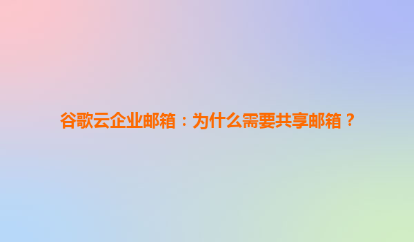 2025-04-22谷歌云企业邮箱:为什么需要共享邮箱? 一、共享邮箱的定义与核心需求 共享邮箱(SharedMailbox)是企业中多个成员可共同管理和使用的邮箱账户,通常用于处理部门级或项目级事务。例如:support@company.c...