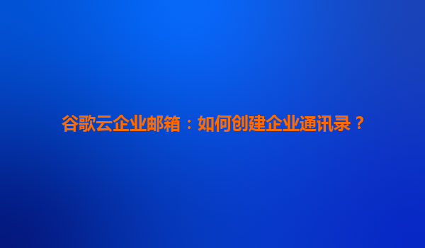 2025-04-22谷歌云企业邮箱:如何创建企业通讯录? 一、谷歌云企业邮箱的核心优势 在创建企业通讯录前,需了解谷歌云企业邮箱(GoogleWorkspace)的独特优势,这些功能将直接影响通讯录的管理效率: ...