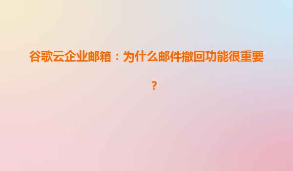 谷歌云企业邮箱:为什么邮件撤回功能很重要? 一、邮件撤回功能的重要性 在数字化办公时代,电子邮件依然是企业沟通的核心工具之一。然而,误发邮件、信息错误或隐私泄露等问题频发,可...