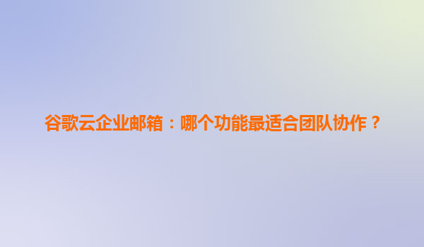 2025-04-21谷歌云企业邮箱:哪个功能最适合团队协作? 一、团队协作的痛点与谷歌云企业邮箱的定位 在远程办公和全球化协作的背景下,团队需高效处理邮件、实时共享信息并保障数据安全。谷歌云企业邮箱(GoogleWo...