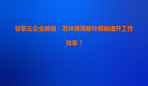 2025-04-21谷歌云企业邮箱:如何利用邮件模板提升工作效率? 一、为什么需要邮件模板? 在日常工作中,大量重复性邮件(如客户跟进、会议邀请、通知公告等)占据了员工大量时间。据统计,职场人平均每天需处理30-...