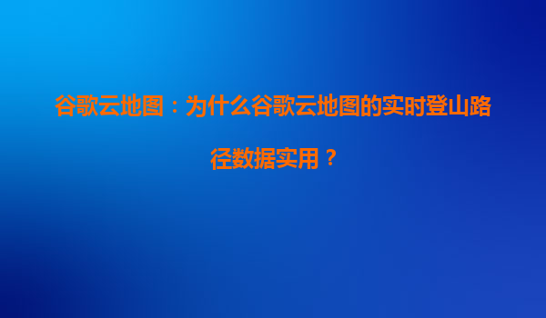 2025-04-21谷歌云地图:实时登山路径数据的实用价值与生态优势 一、实时登山路径数据的核心价值 在户外运动高速发展的今天,登山路径实时数据通过以下方式创造显著价值: 安全预警系统:动态更新天...
