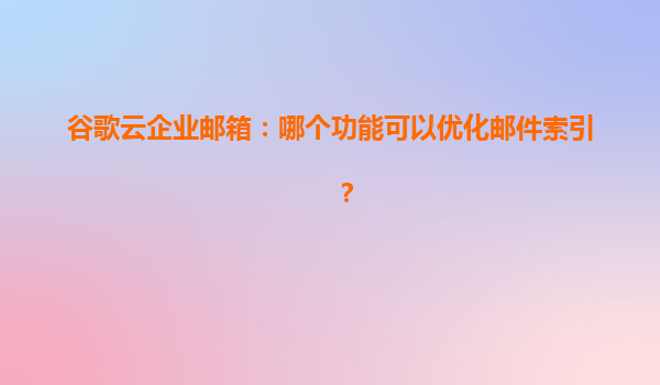 2025-04-19谷歌云企业邮箱:如何通过核心功能优化邮件索引? 一、邮件索引的重要性与挑战 在现代企业通信中,电子邮件日均处理量呈指数级增长。根据谷歌2023年企业效率报告,员工平均每天需处理50+封邮件,其中30...