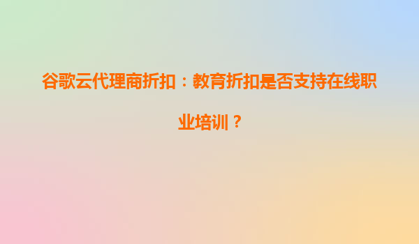2025-04-18谷歌云代理商折扣:教育折扣是否支持在线职业培训? 一、谷歌云教育折扣的核心价值 谷歌云作为全球领先的云计算服务提供商,始终致力于推动教育和技术普惠。其教育折扣计划(GoogleCloudEdu...