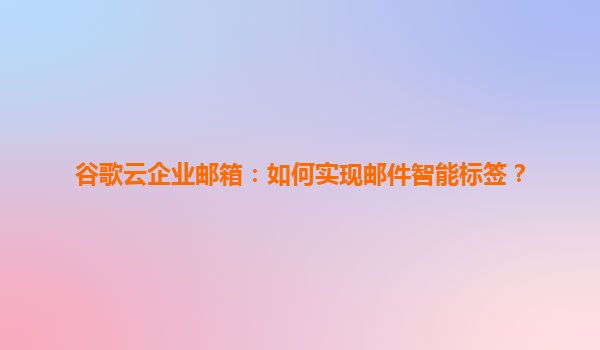 2025-04-18谷歌云企业邮箱:如何实现邮件智能标签? 一、为什么需要邮件智能标签? 在企业管理场景中,邮件分类与优先级管理是提升工作效率的关键。传统手动分类耗时且易出错,而通过谷歌云企业邮...
