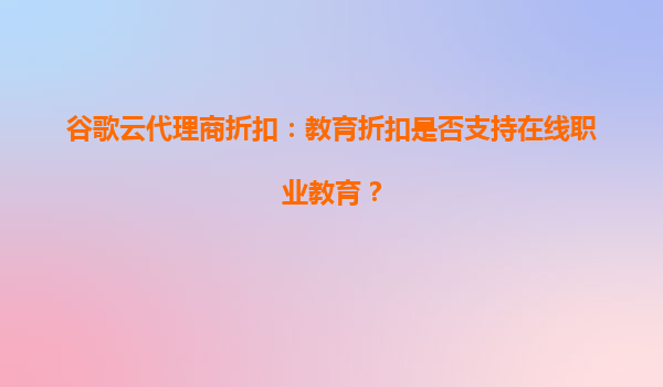 2025-04-17谷歌云代理商折扣:教育折扣是否支持在线职业教育? 一、谷歌云的核心优势与教育领域布局 谷歌云作为全球领先的云计算服务提供商,凭借其高性能基础设施、人工智能工具(如VertexAI和TensorFlow...