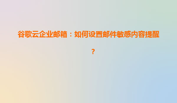 2025-04-17谷歌云企业邮箱:如何设置邮件敏感内容提醒? 一、谷歌云企业邮箱的核心优势 谷歌云企业邮箱(GoogleWorkspace)作为全球领先的企业级协作工具,在邮件安全管理方面具备以下独特优势: AI驱...