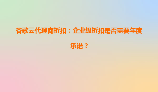 2025-04-13谷歌云代理商折扣解析:企业级折扣是否需要年度承诺? 引言 随着云计算技术的普及,越来越多的企业选择将业务迁移到云端。谷歌云(GoogleCloud)作为全球领先的云服务提供商之一,凭借其技术优势、灵...