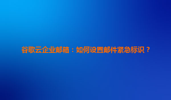 谷歌云企业邮箱:如何设置邮件紧急标识? 一、谷歌云企业邮箱的核心优势 谷歌云企业邮箱(GoogleWorkspace)作为全球领先的企业级邮箱解决方案,具备以下核心优势: 高效协作能力:深度集成G...