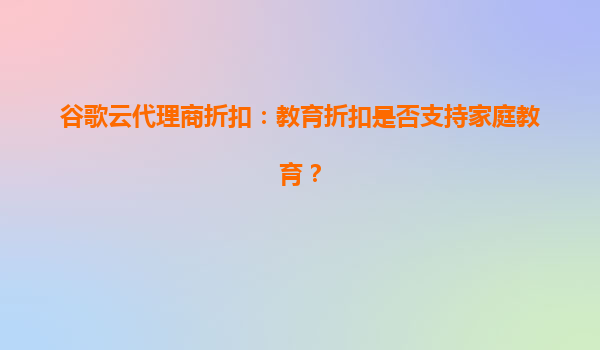 2025-04-13谷歌云代理商折扣:教育折扣是否支持家庭教育? 引言 随着云计算技术的普及,谷歌云(GoogleCloud)逐渐成为教育领域数字化转型的重要工具。许多教育机构通过...