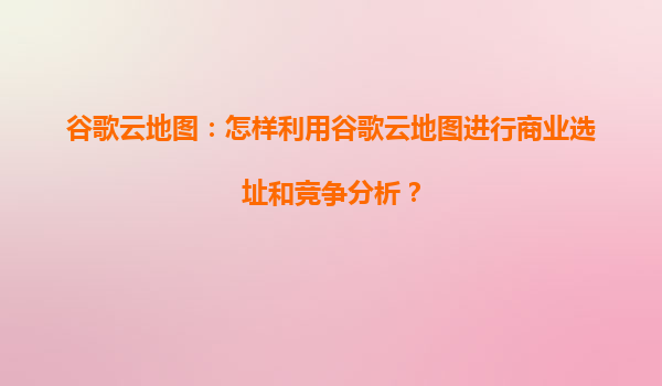 2025-04-13如何利用谷歌云地图进行商业选址与竞争分析? 一、谷歌云地图:商业决策的智能导航 谷歌云地图(GoogleMapsPlatform)整合地理空间数据、实时分析和AI技术,为企业提供从选址到...