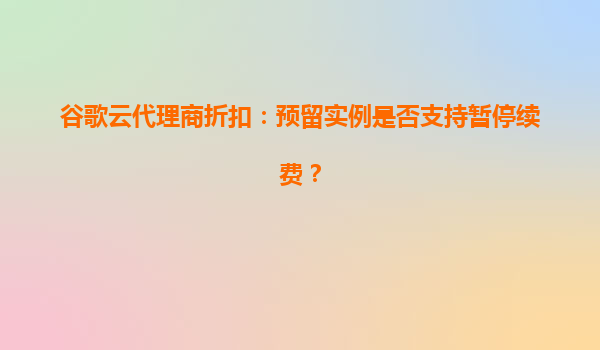 2025-04-13谷歌云代理商折扣:预留实例是否支持暂停续费? 在云计算领域,谷歌云(GoogleCloudPlatform,GCP)凭借其灵活的资源管理、全球化的基础设施以及强大的技术生态,成为企业上云的热门选择。...