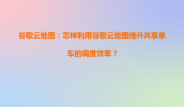 2025-04-12如何利用谷歌云地图提升共享单车调度效率? 一、共享单车调度面临的挑战 共享单车的调度效率直接影响用户体验与运营成本,传统调度依赖人工经验,常面临以下问题: -车辆分布不均,高峰时段供...